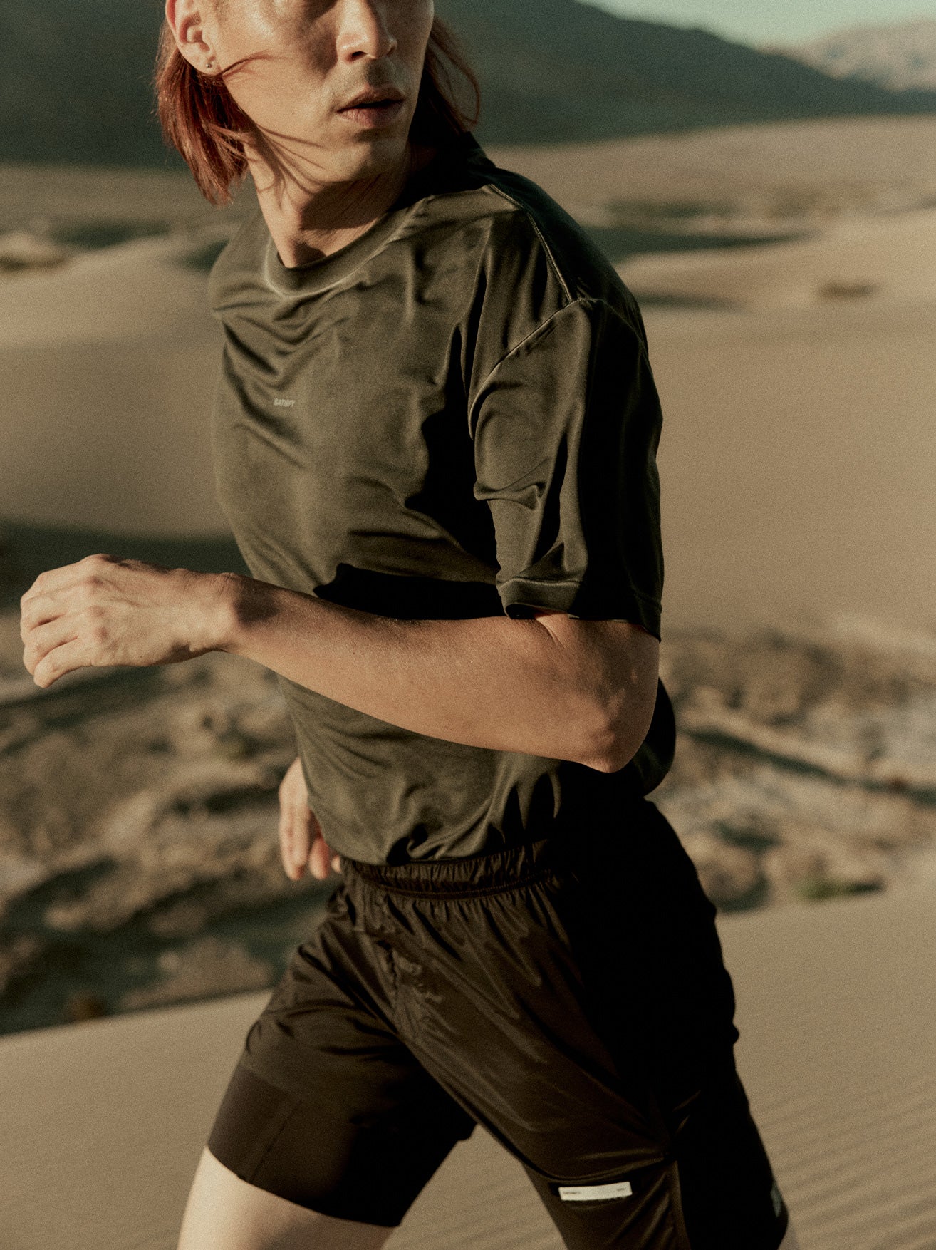 Cotton shaped for running, breathing naturally across seasons while aging, softening with motion.