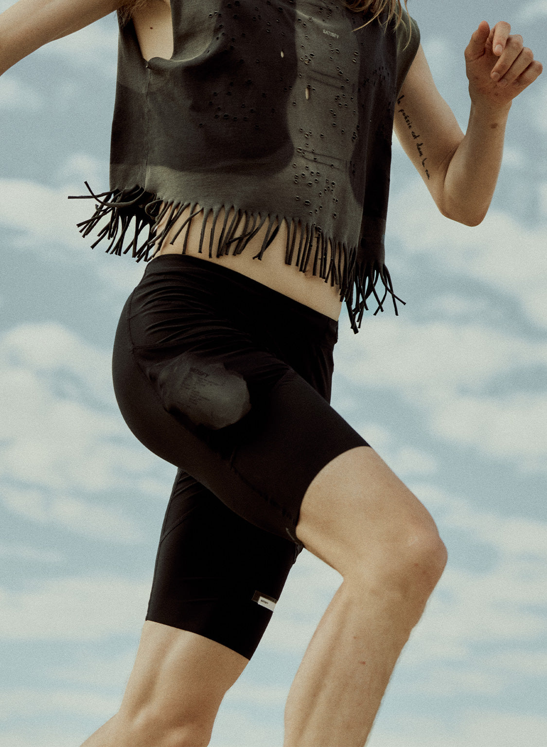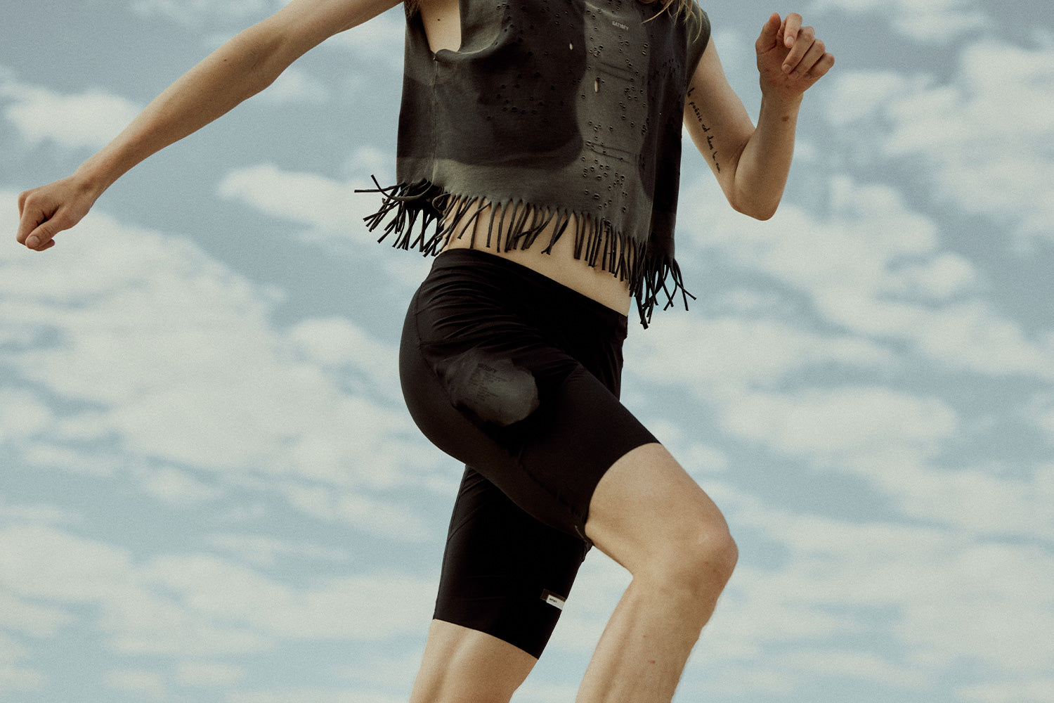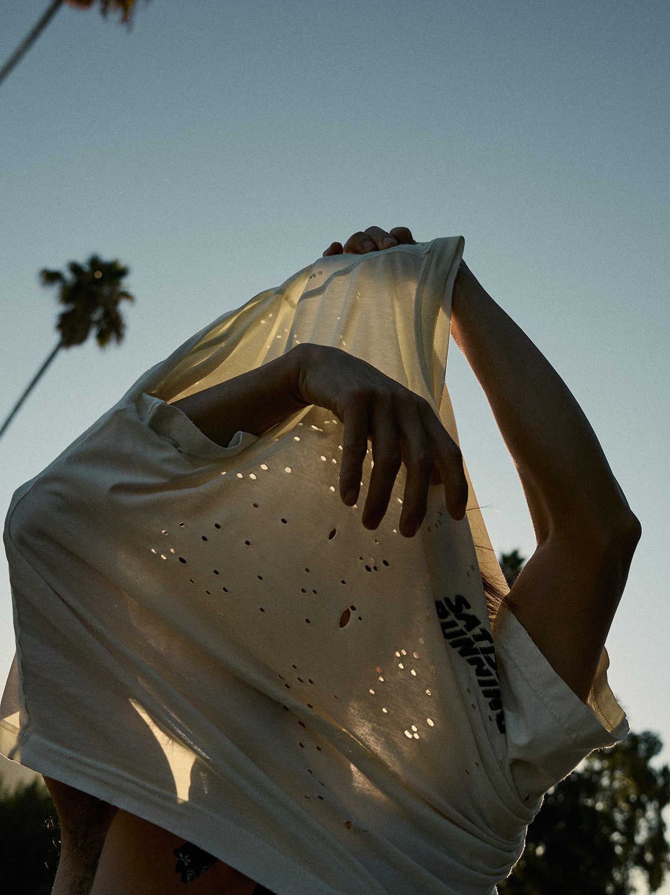 Organic cotton that is laser-cut and hand-opened for airflow where the body needs to breathe.