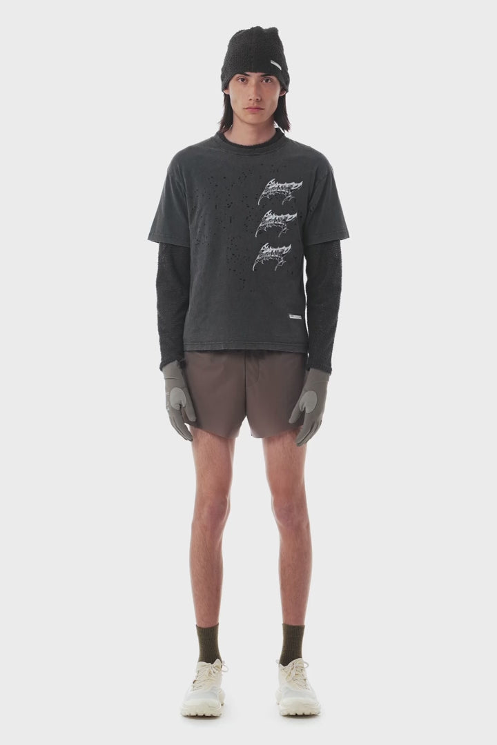 When distance builds, effort shows. Heat escapes and the mind follows. 175 grams of organic cotton, aged and ventilated for exploration without distraction. It's OK to run in cotton.