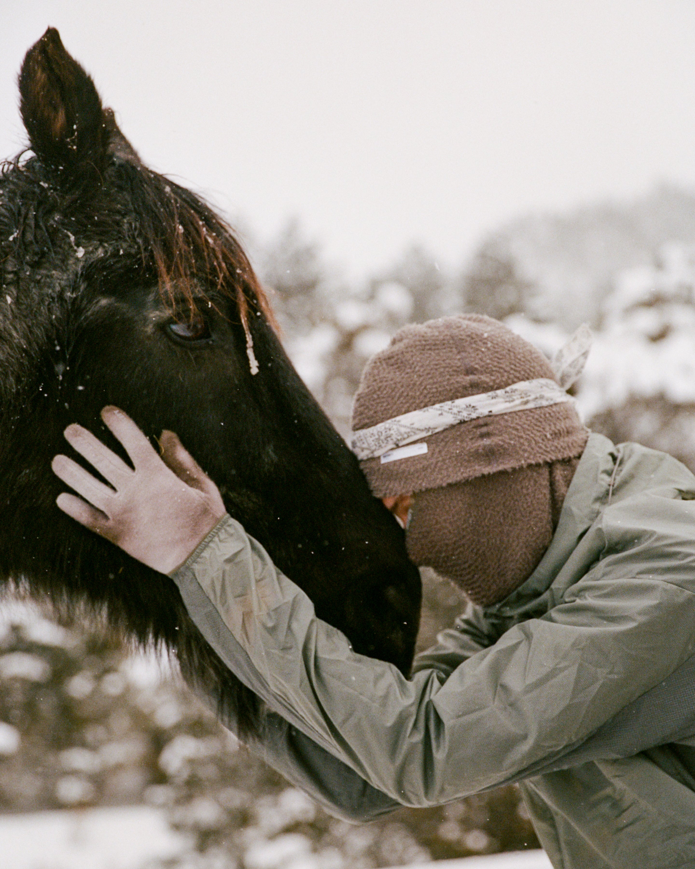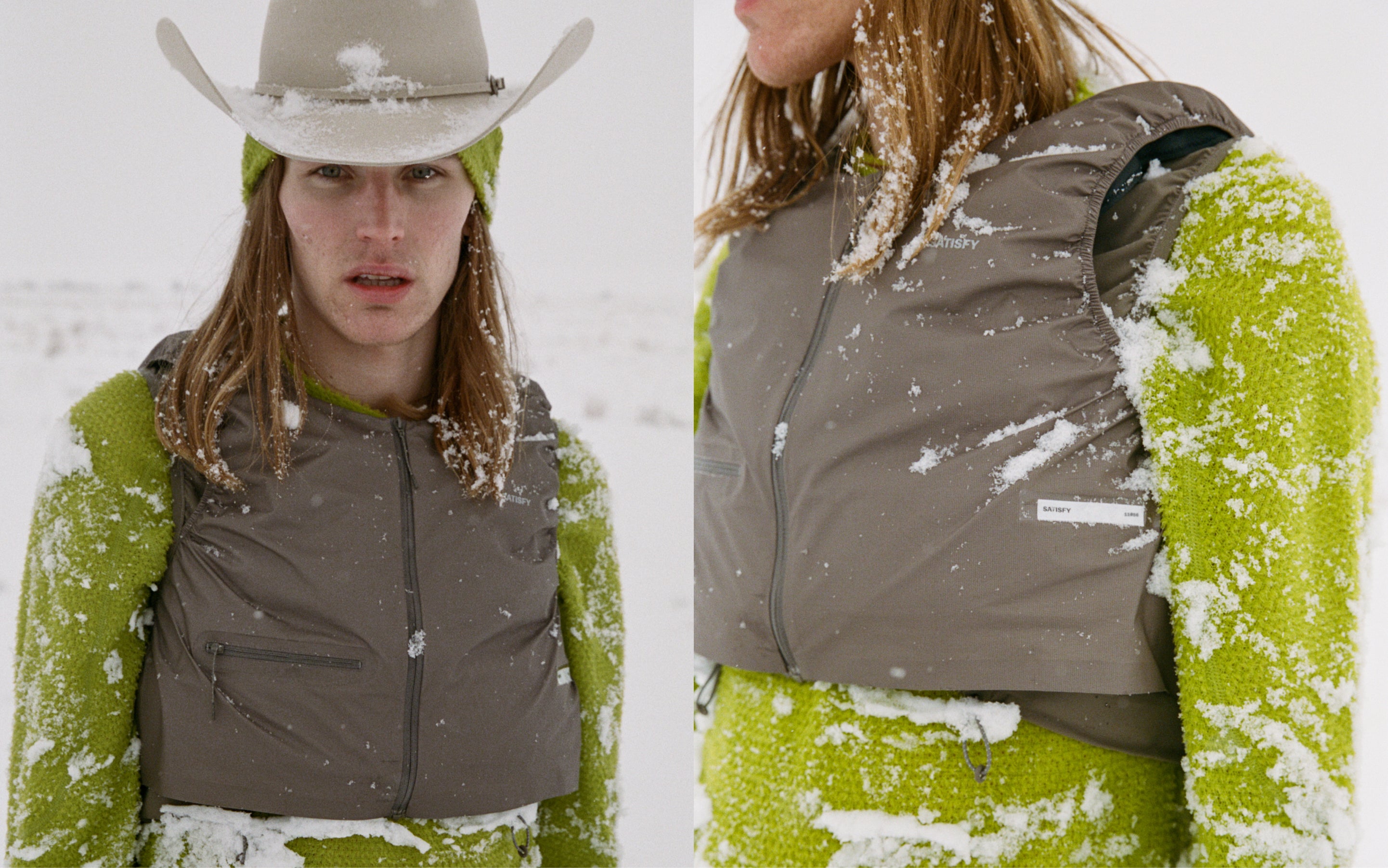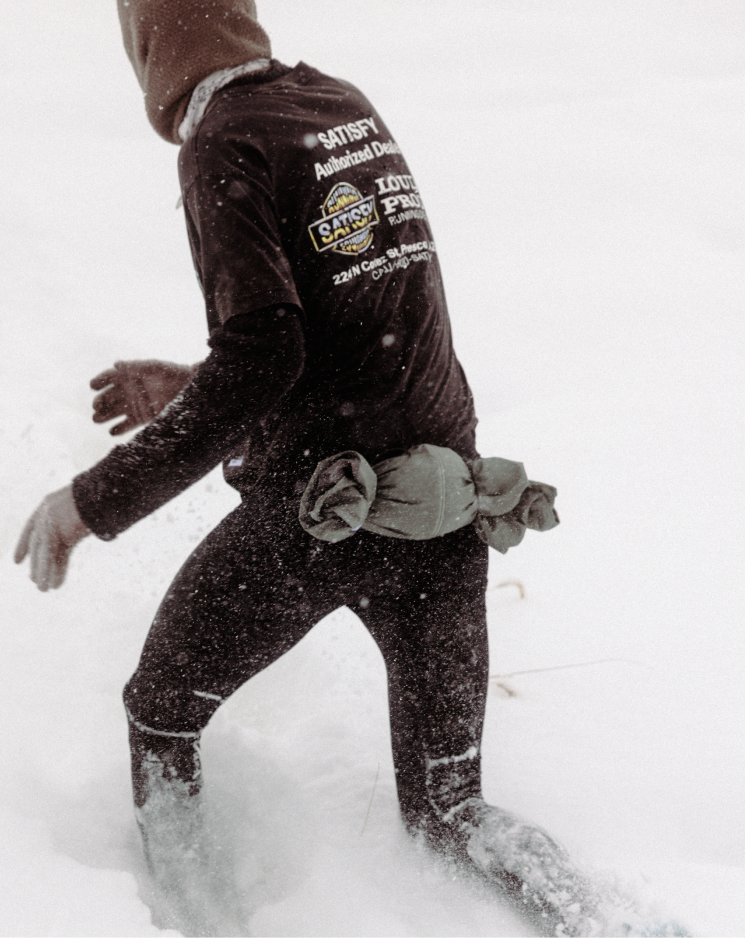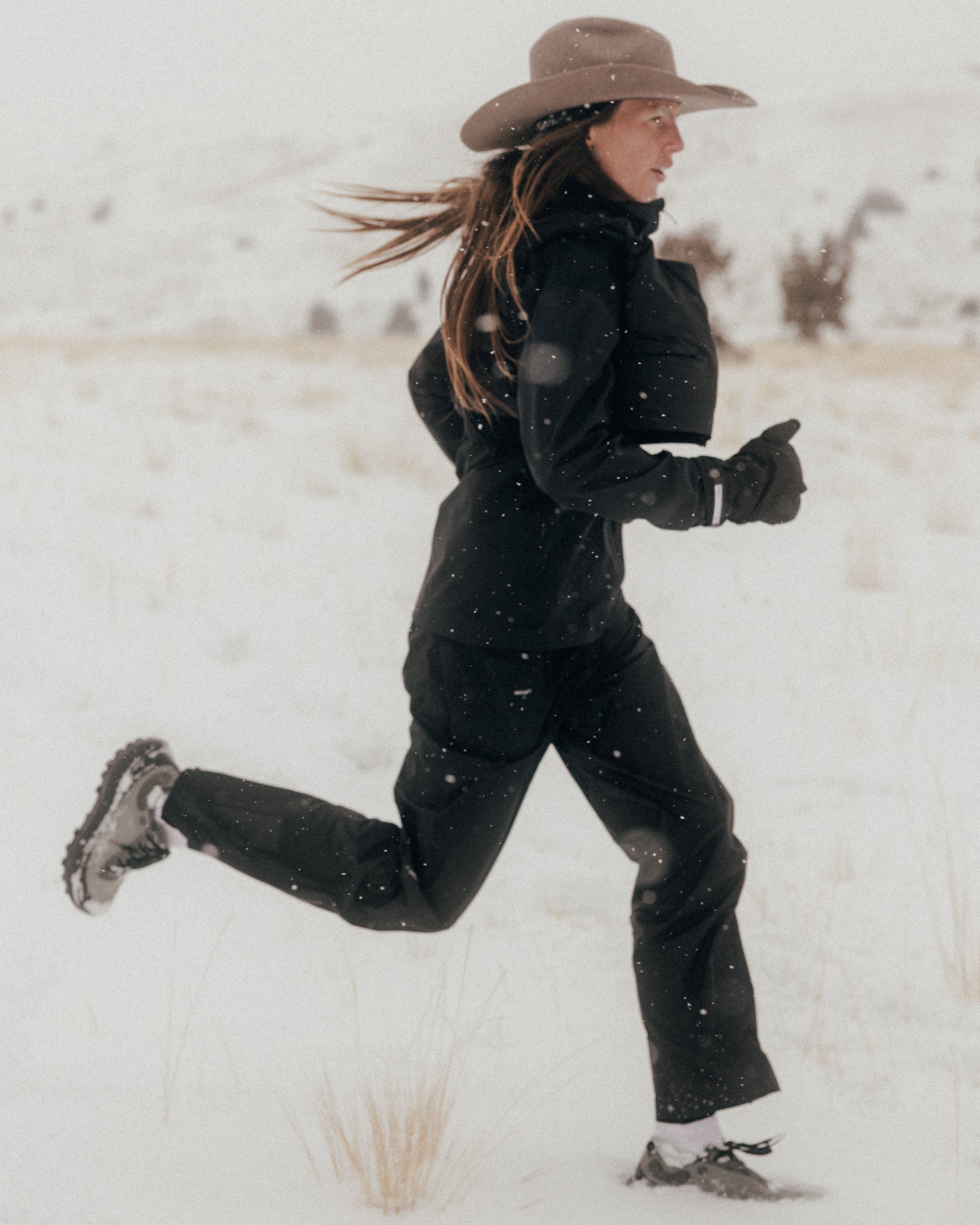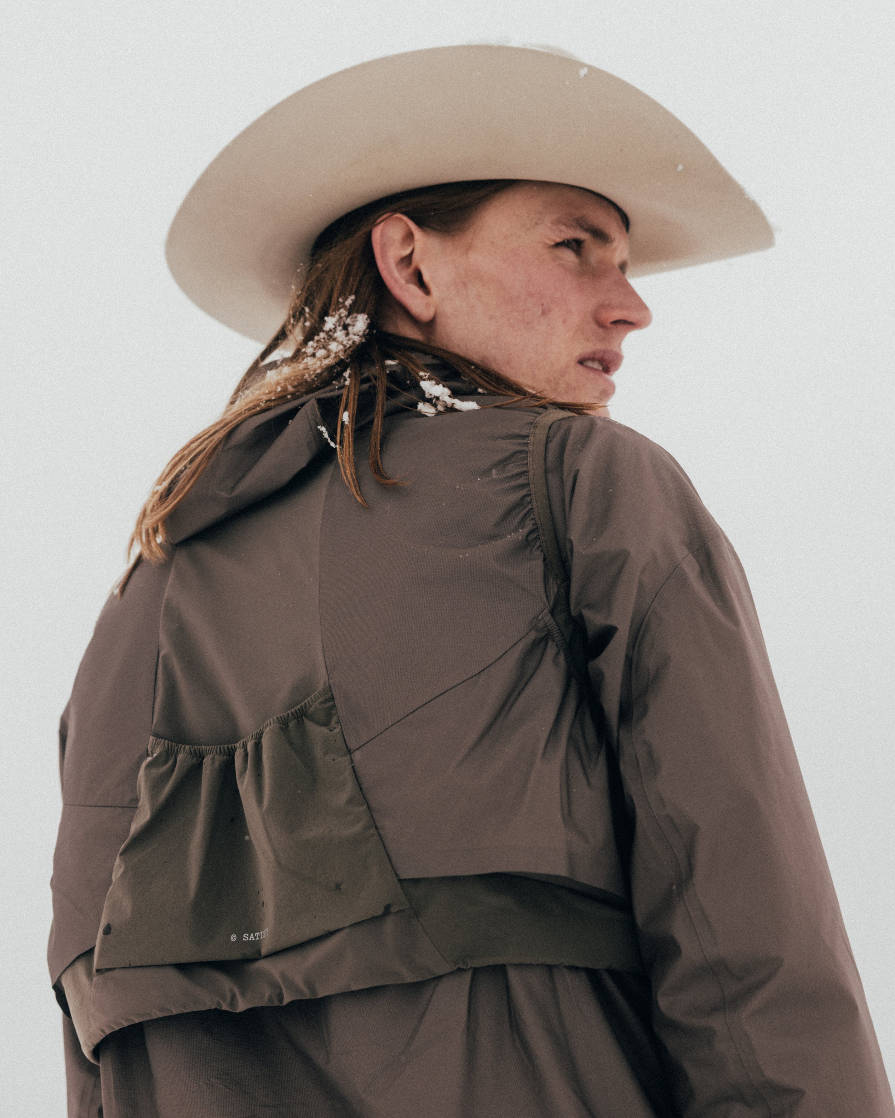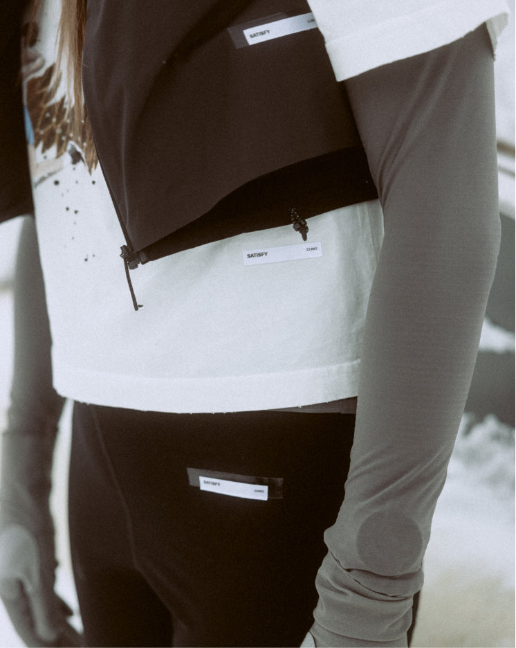 Tales from the North, edged with snowed-out trails, white-washed skies. Montana in winter. Here, SATISFY Pro Athletes Cat Bradley and Stian Sommerseth move through frozen air, each stride weighing protection and release. Endurance tested in the chase for warmth and peace amid the cold.
