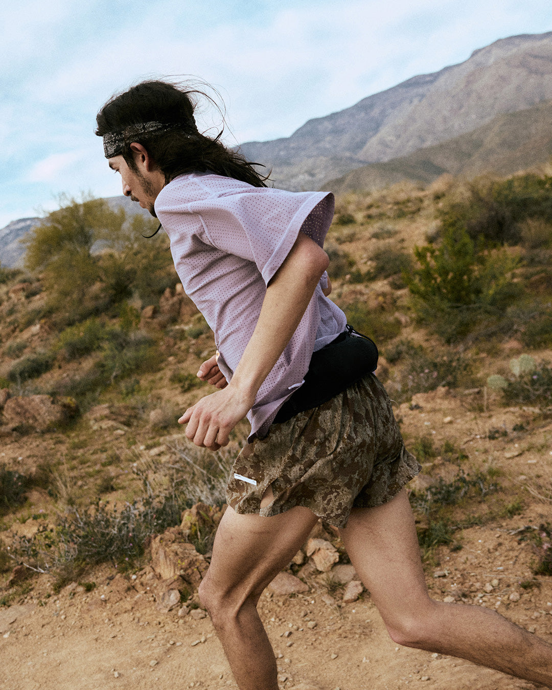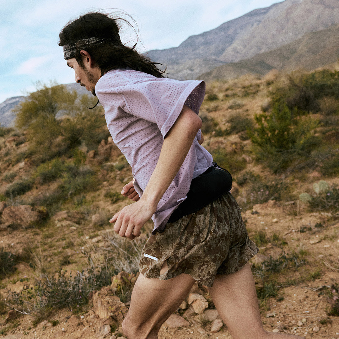 His early miles were raced in the Space-O™ Singlet for focus and speed. Later, he shifted into the PeaceShell™ River Shirt. Lightweight. Fast-dry. Mechanically stretched to stay with him as the terrain pitched and pulled.