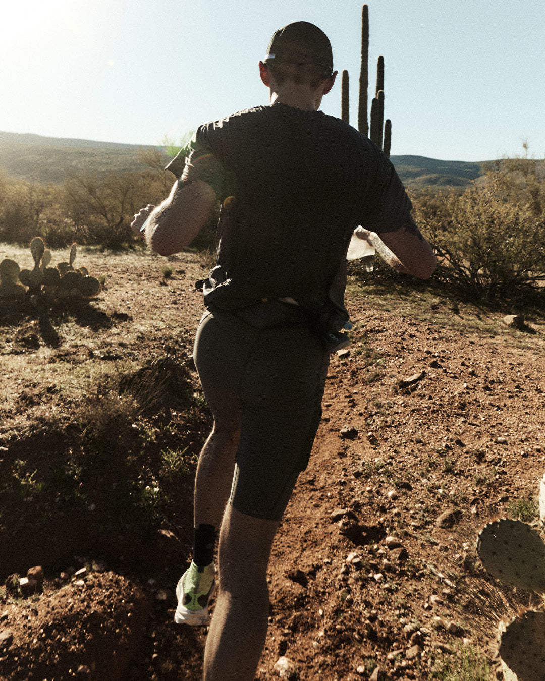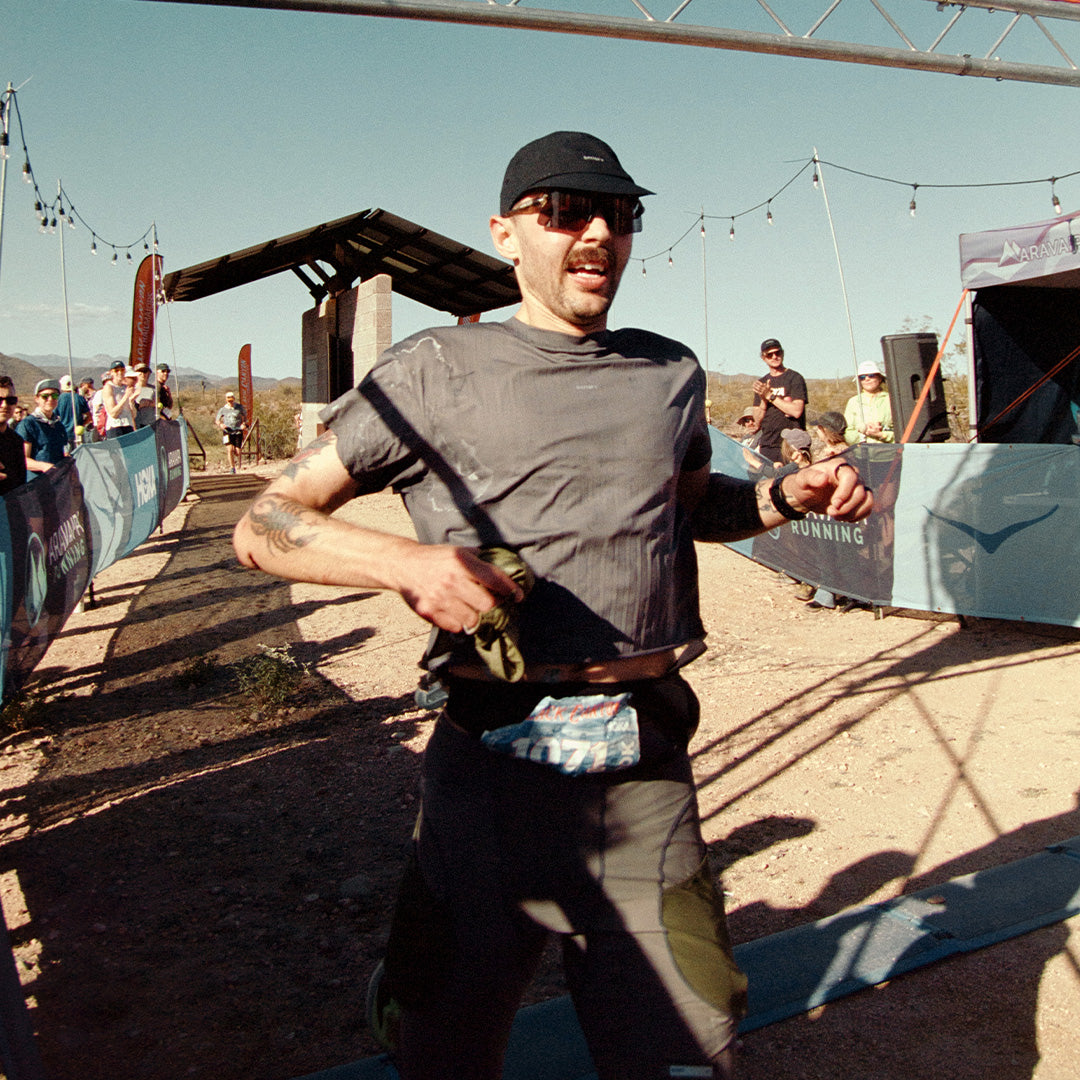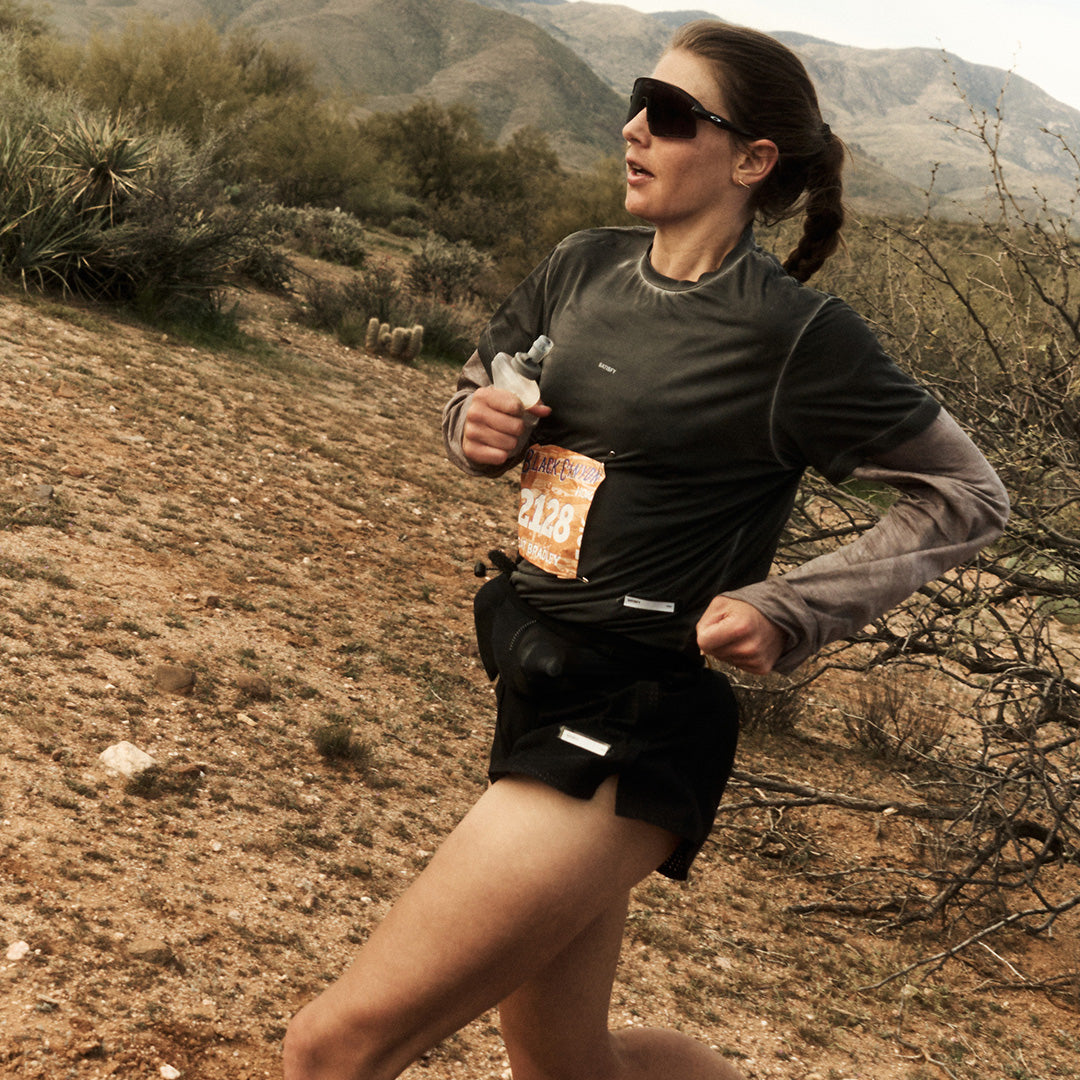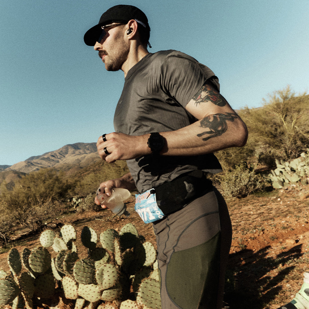 He moved through the Arizona desert in TechSilk™ Evo Half-Tights. Structural support for 100 kilometers of exposure. Silky. Resilient. Holding form as fatigue layered in.