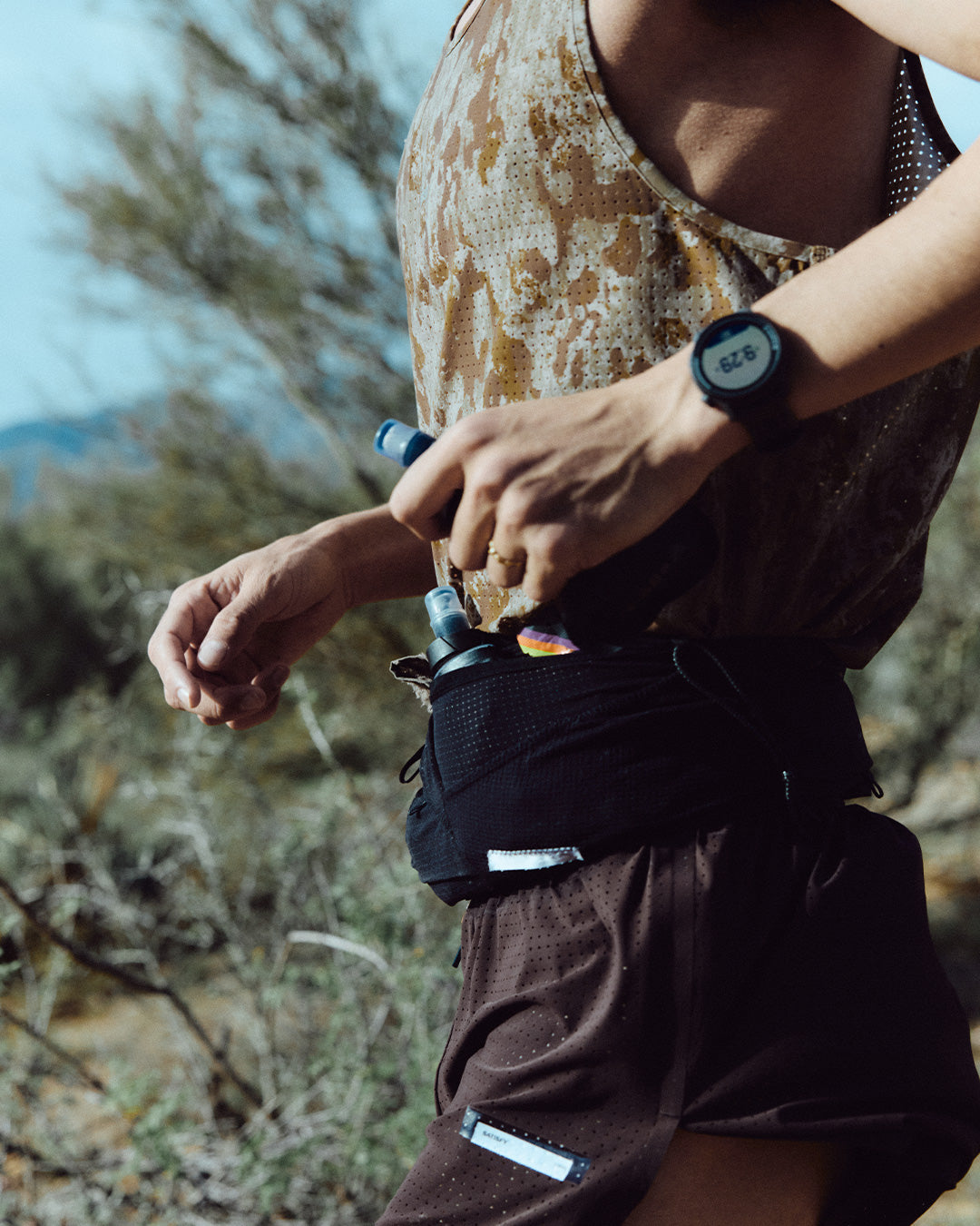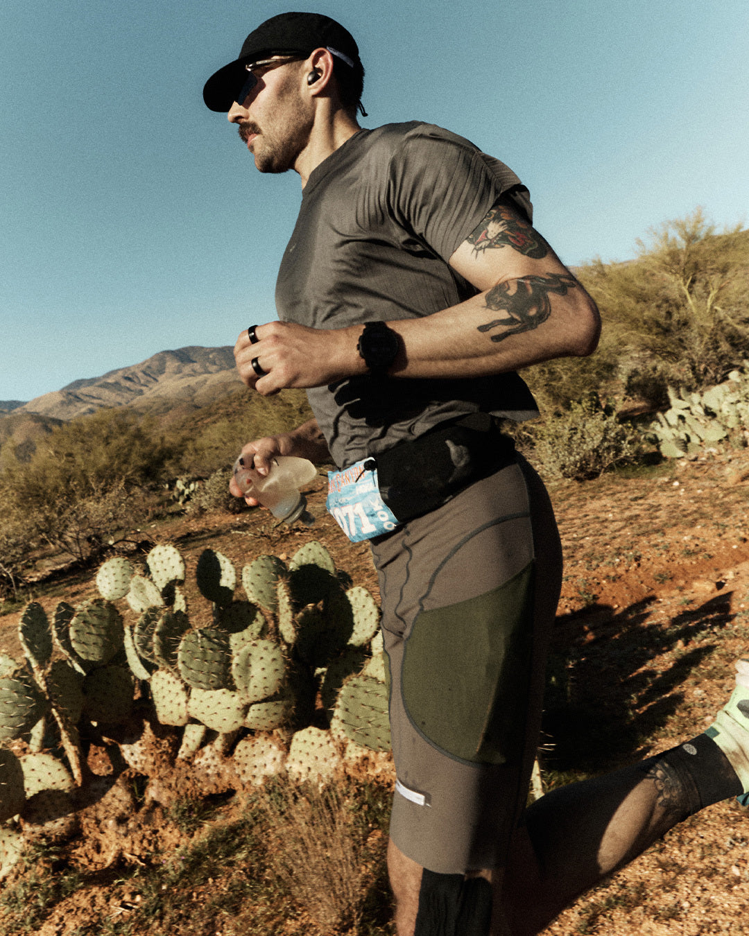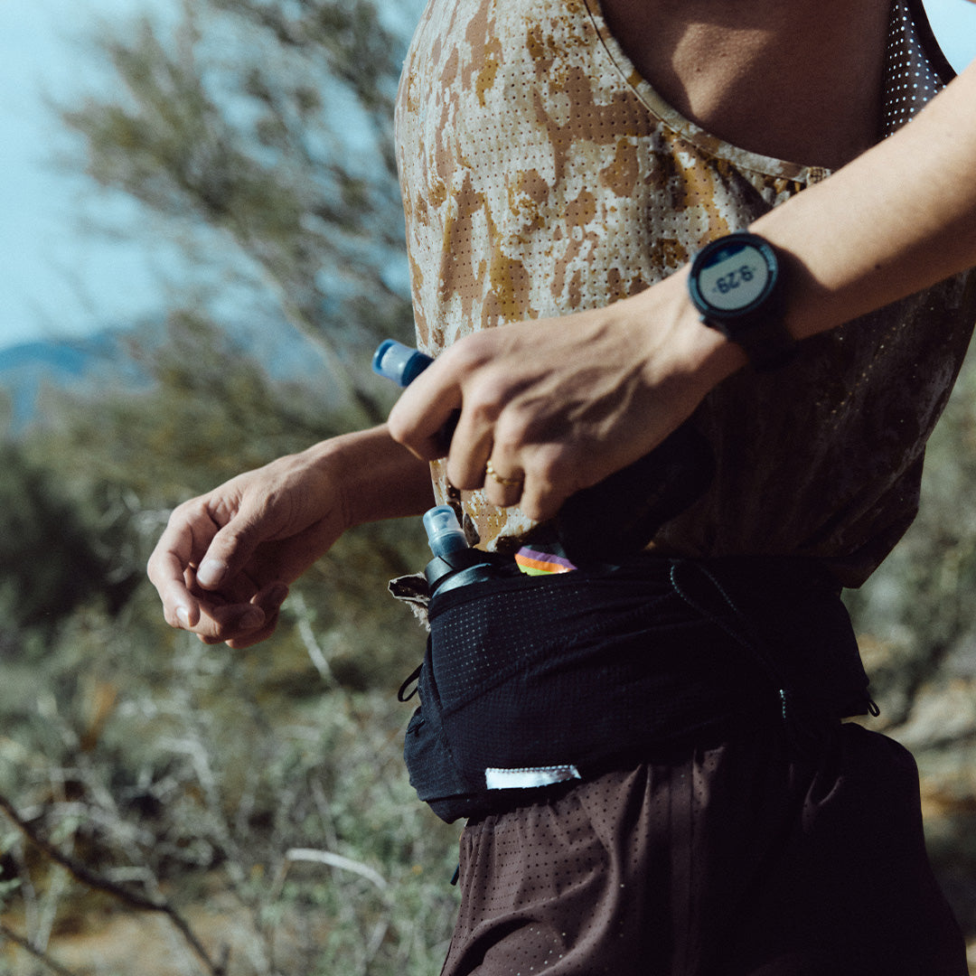 He moved through the Arizona desert in TechSilk™ Evo Half-Tights. Structural support for 100 kilometers of exposure. Silky. Resilient. Holding form as fatigue layered in.