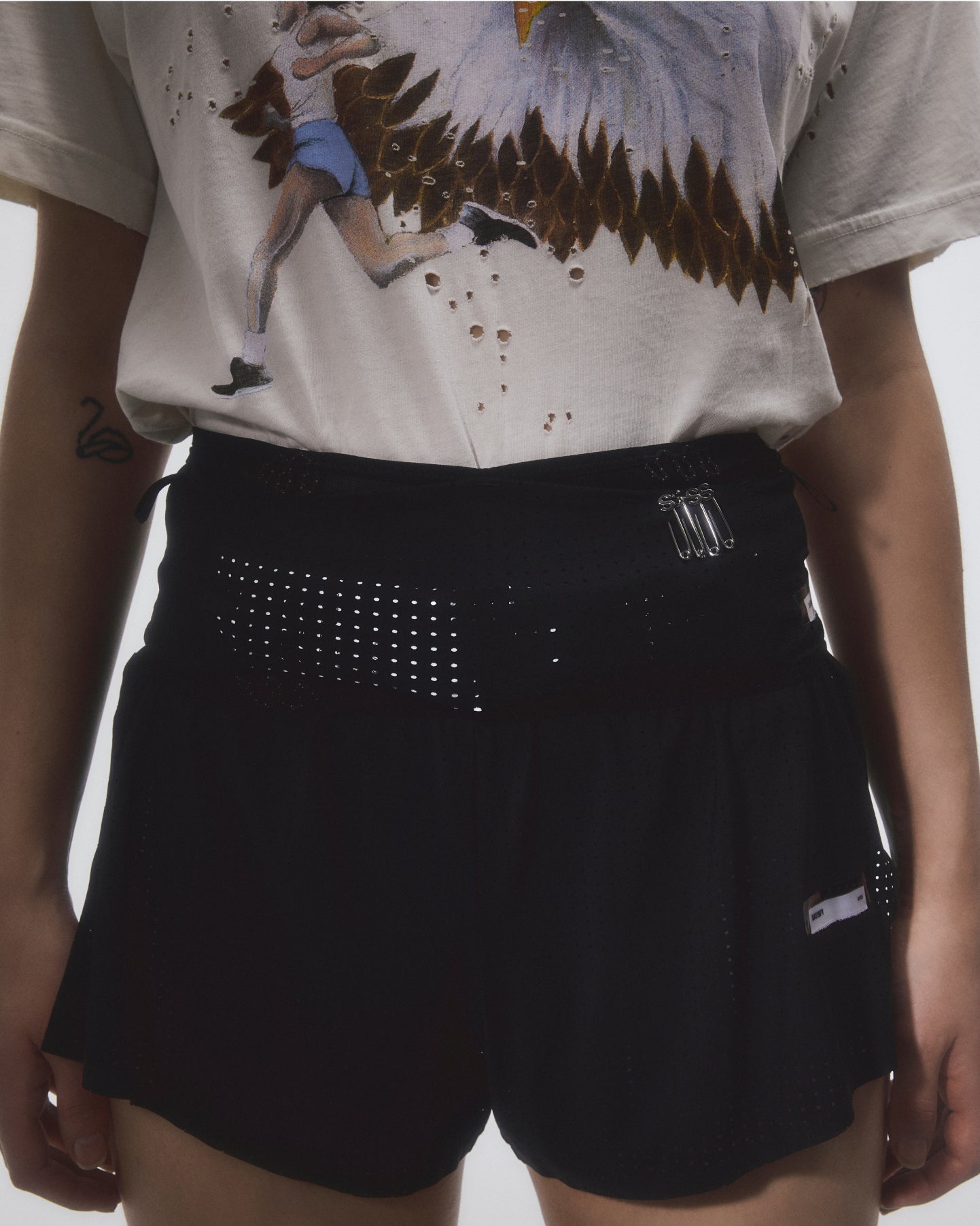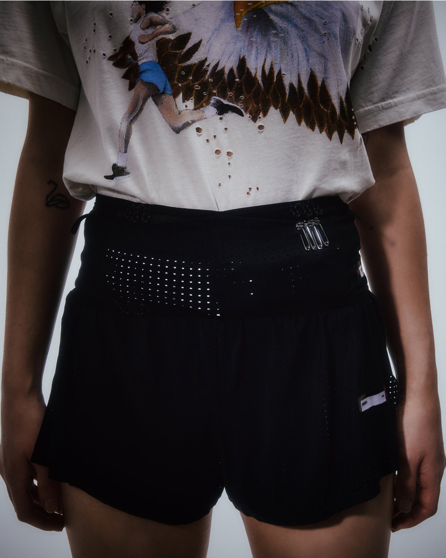 Space-O™ perforated micro jersey from Italy. Featherlight and fast-cooling. Laser-cut holes double as attachment points for race bibs, keeping essentials secure without extra gear. Fitted with a Justice™ liner for barely-there feel.