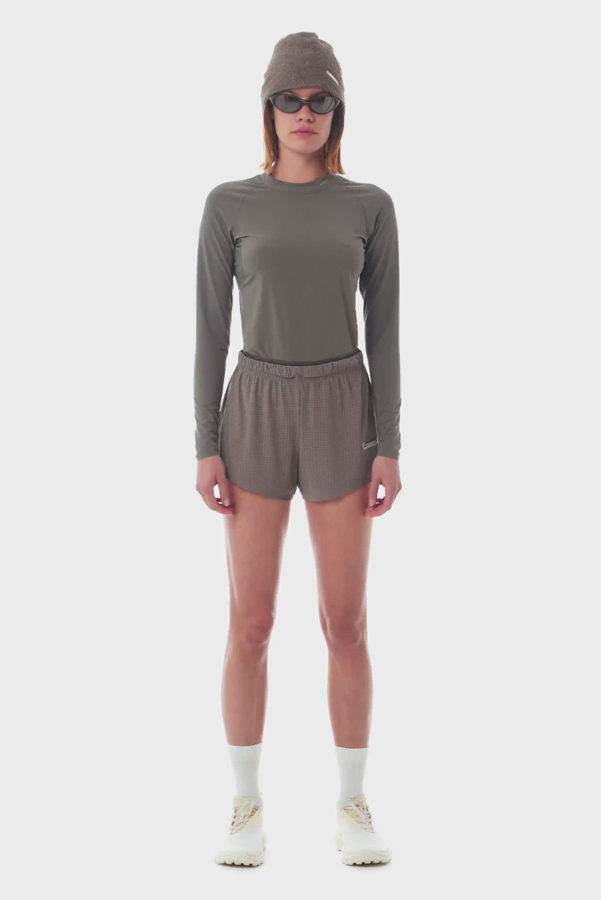 A high-stretch, coffee-charcoal infused fabric from Italy that balances heat retention and breathability. The woven multidimensional structure traps warmth while allowing vapor to escape. Naturally antibacterial and odor-resistant, it keeps its integrity through effort, time, and distance.