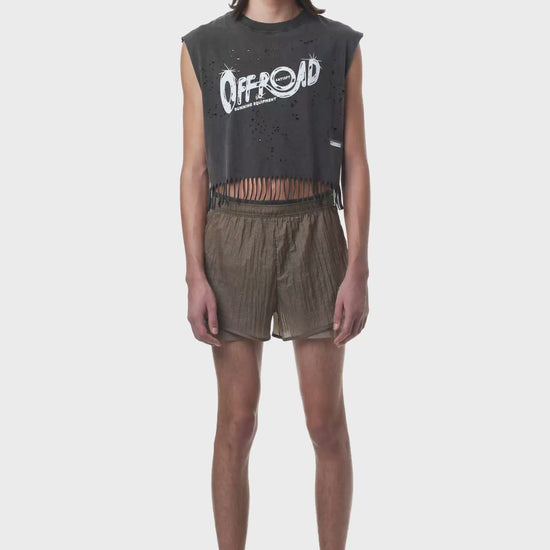 Our signature MothTech™ Muscle Tee with strategically placed holes for ventilation and cooling. Cropped and Fringed.