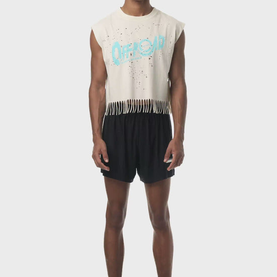 Our signature MothTech™ Muscle Tee with strategically placed holes for ventilation and cooling. Cropped and Fringed.