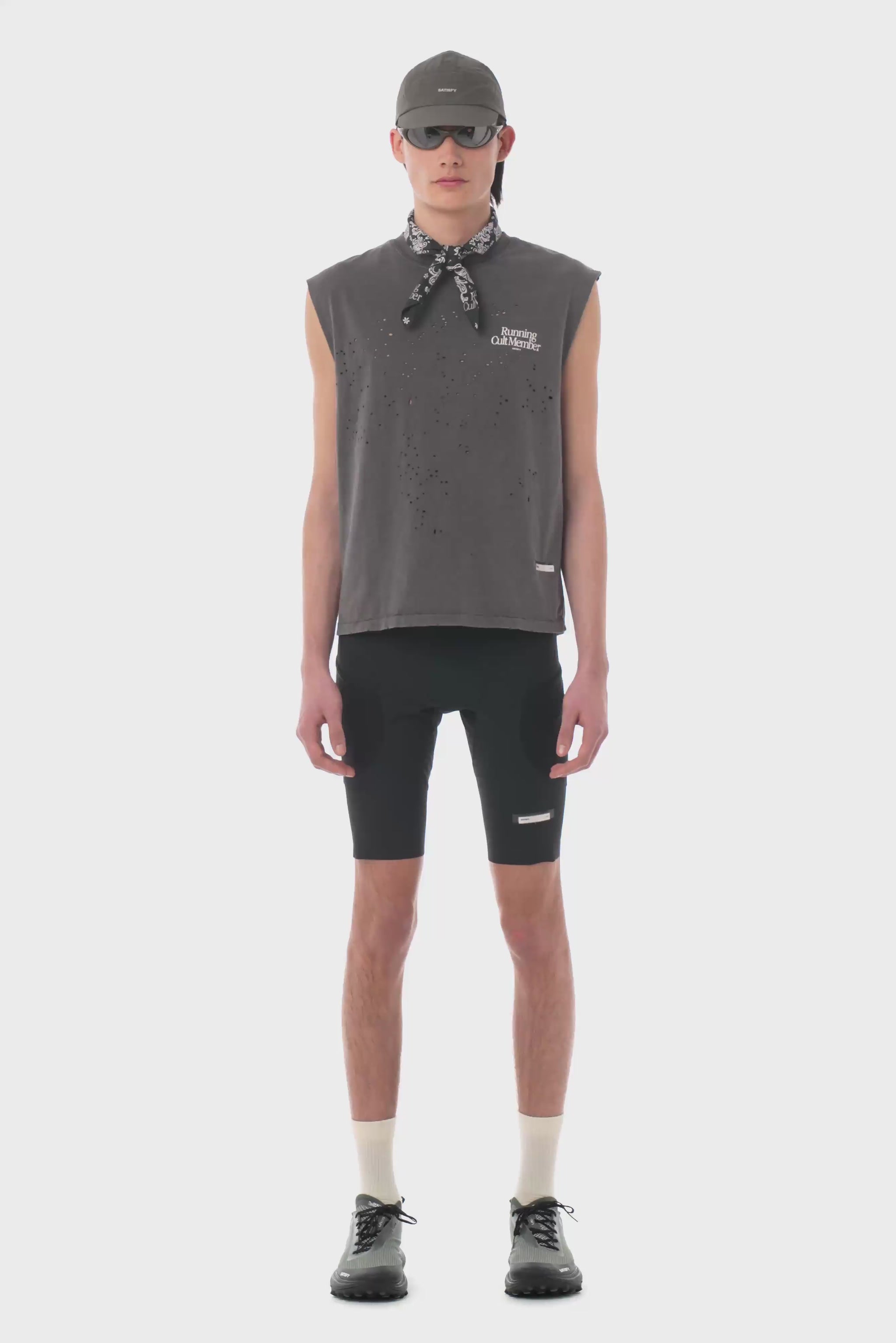 Stealth-reflective ©SATISFY logo, for catching light in the dark
