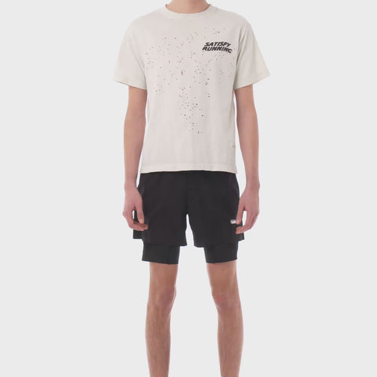 When distance builds, effort shows. Heat escapes and the mind follows. 175 grams of organic cotton, aged and ventilated for exploration without distraction. It's OK to run in cotton.