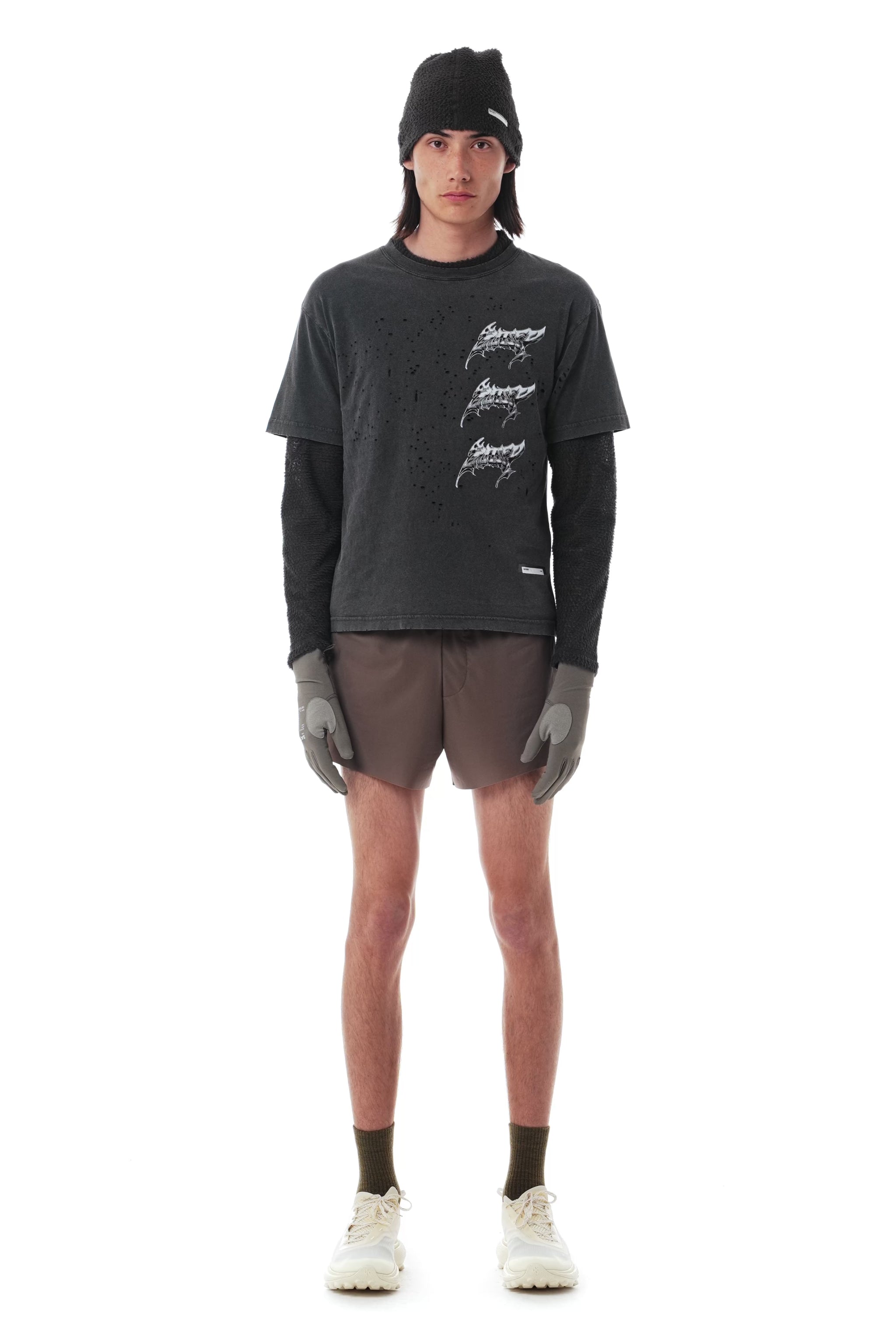 When distance builds, effort shows. Heat escapes and the mind follows. 175 grams of organic cotton, aged and ventilated for exploration without distraction. It's OK to run in cotton.
