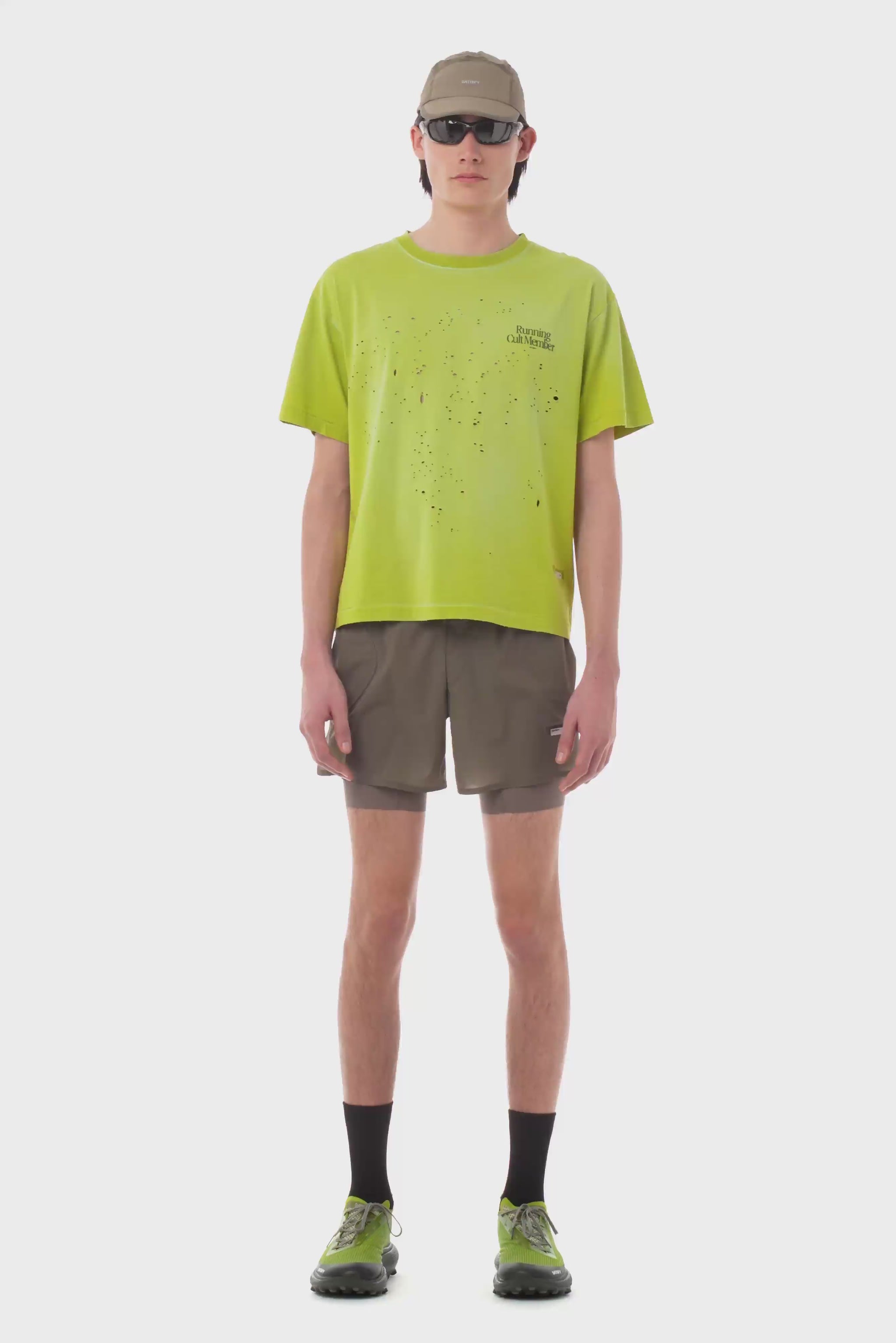 When distance builds, effort shows. Heat escapes and the mind follows. 175 grams of organic cotton, aged and ventilated for exploration without distraction. It's OK to run in cotton.