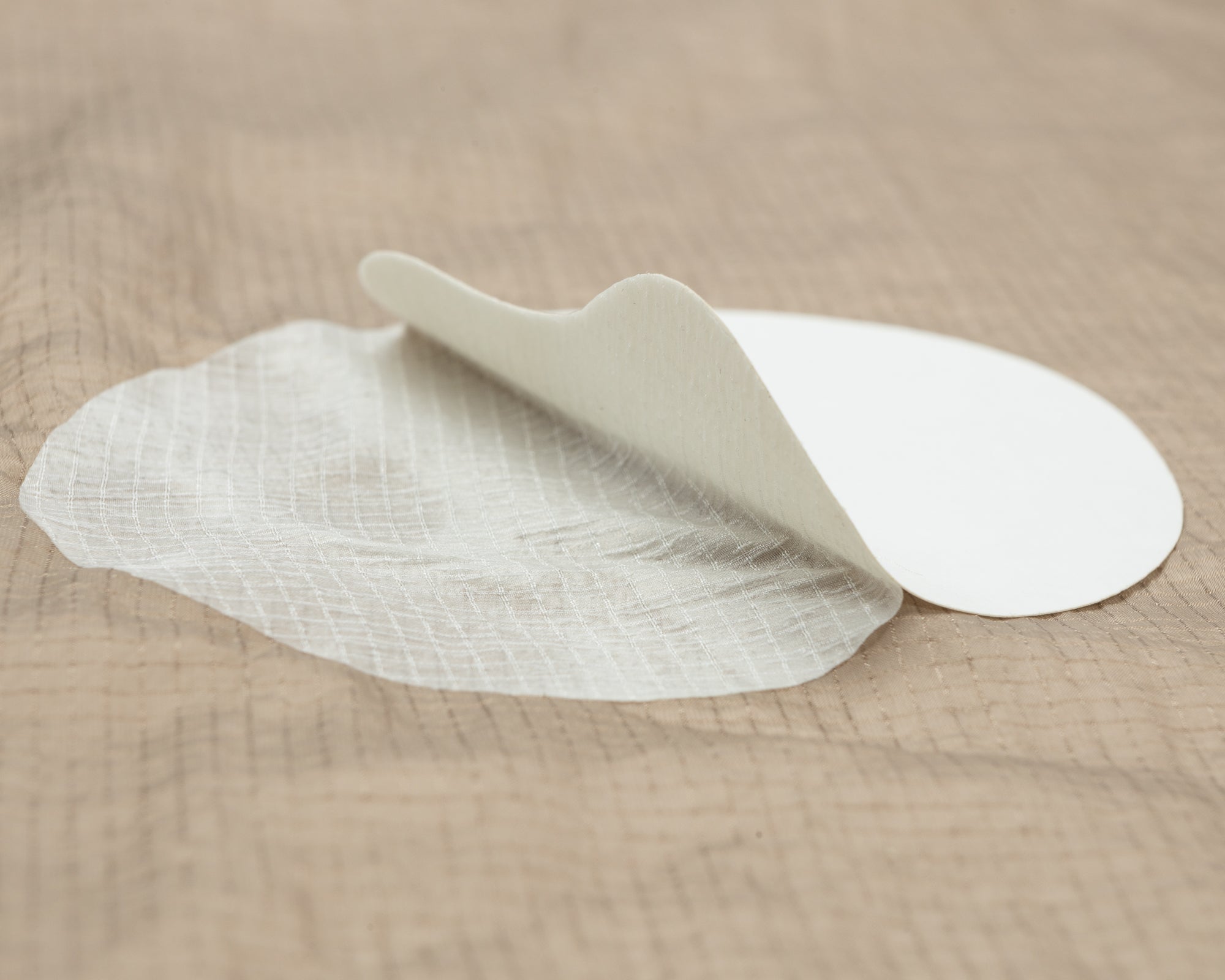 PEEL BACK THE LINER OF THE CHOSEN PATCH, AVOIDING CONTACT WITH THE ADHESIVE.