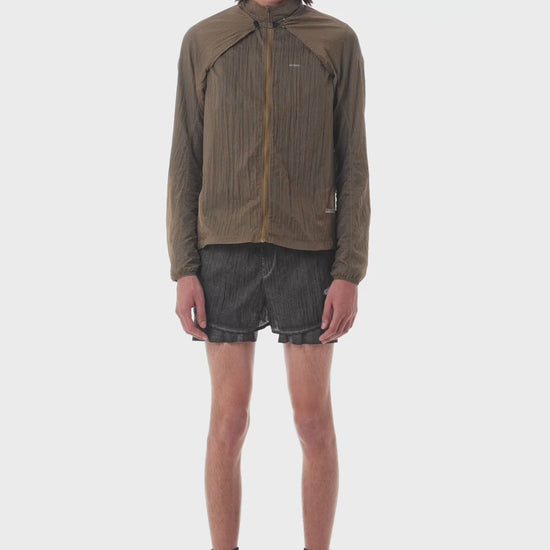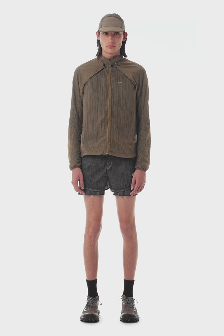 The windbreaker’s integrated stow pocket conceals the folded system until conditions shift again. Modular design built to disappear in motion.