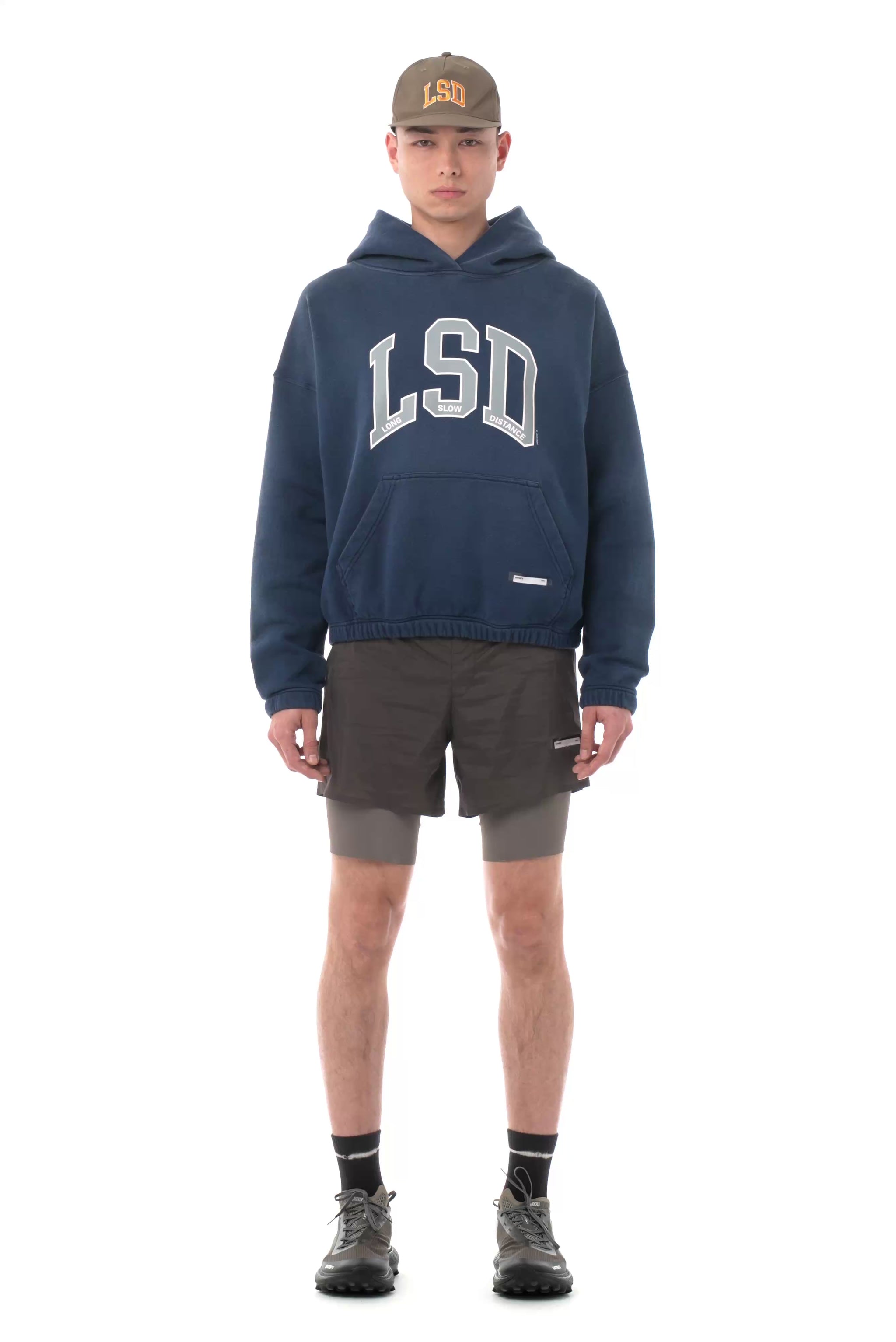 LSD varsity print arched across the frontside.